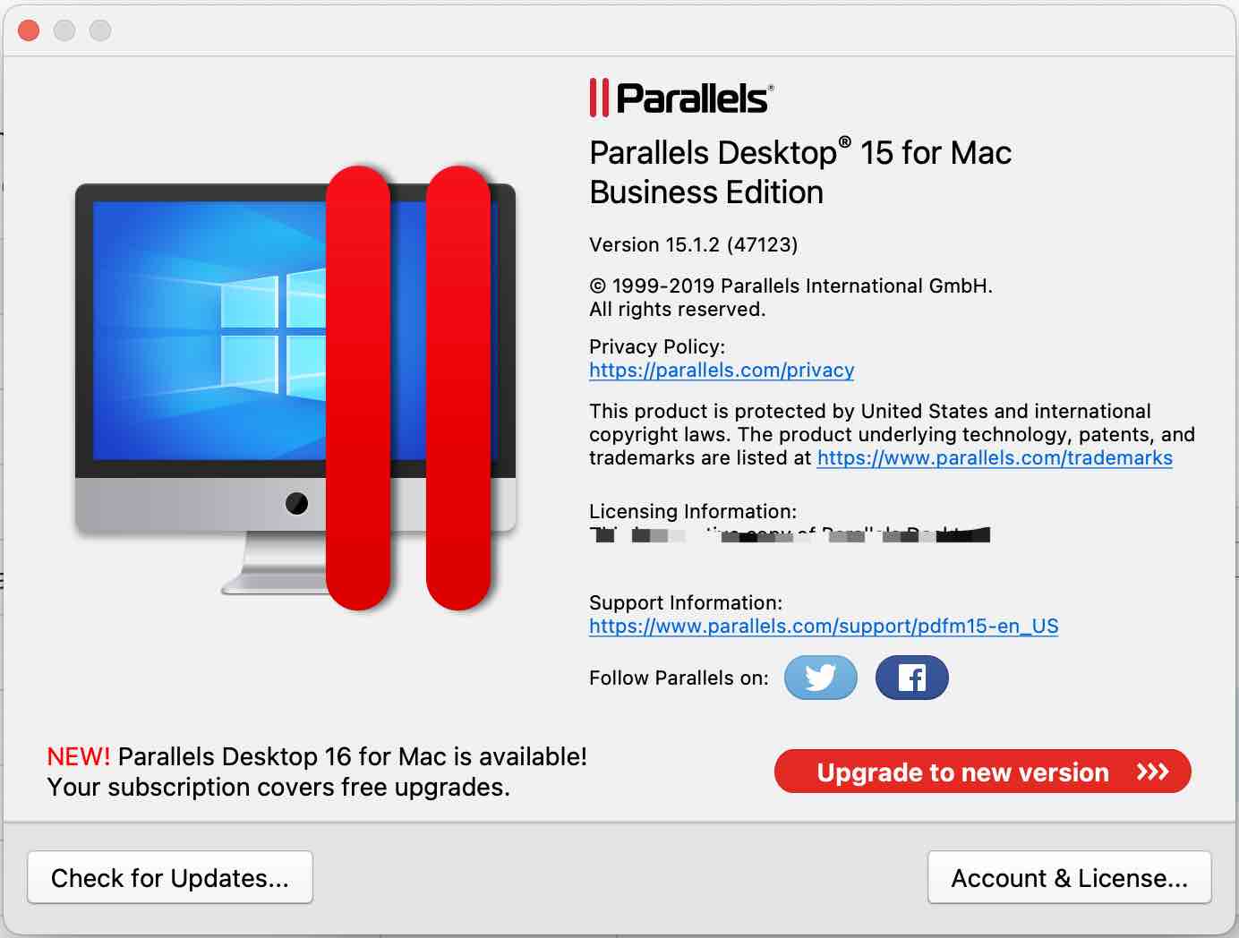 请注意下本文所使用的软件版本号,我的Parallels Desktop版本是15.1.2(47123)